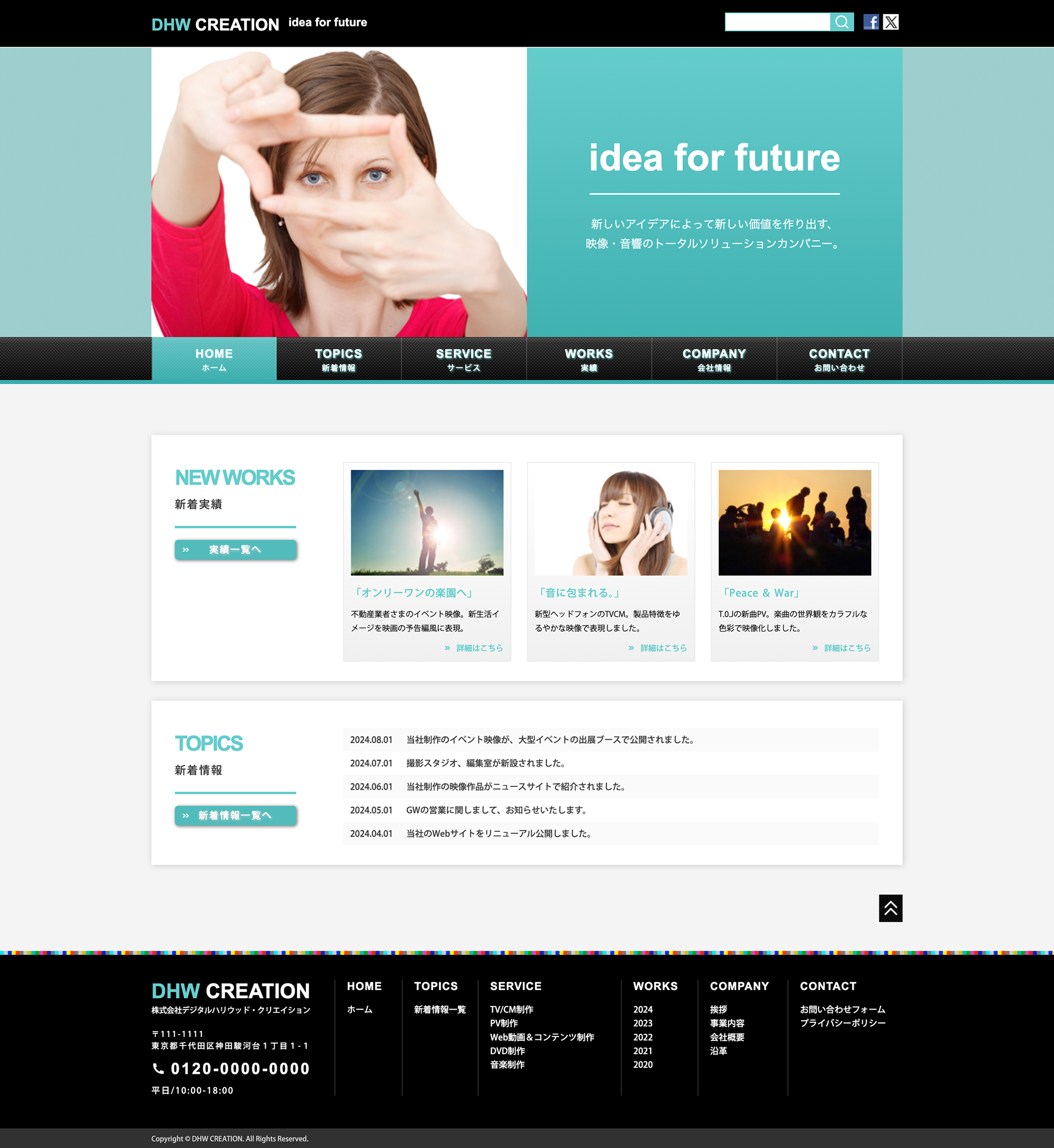 ■制作上の留意点:架空のコーポレートサイト(映像制作会社)がテーマ。
